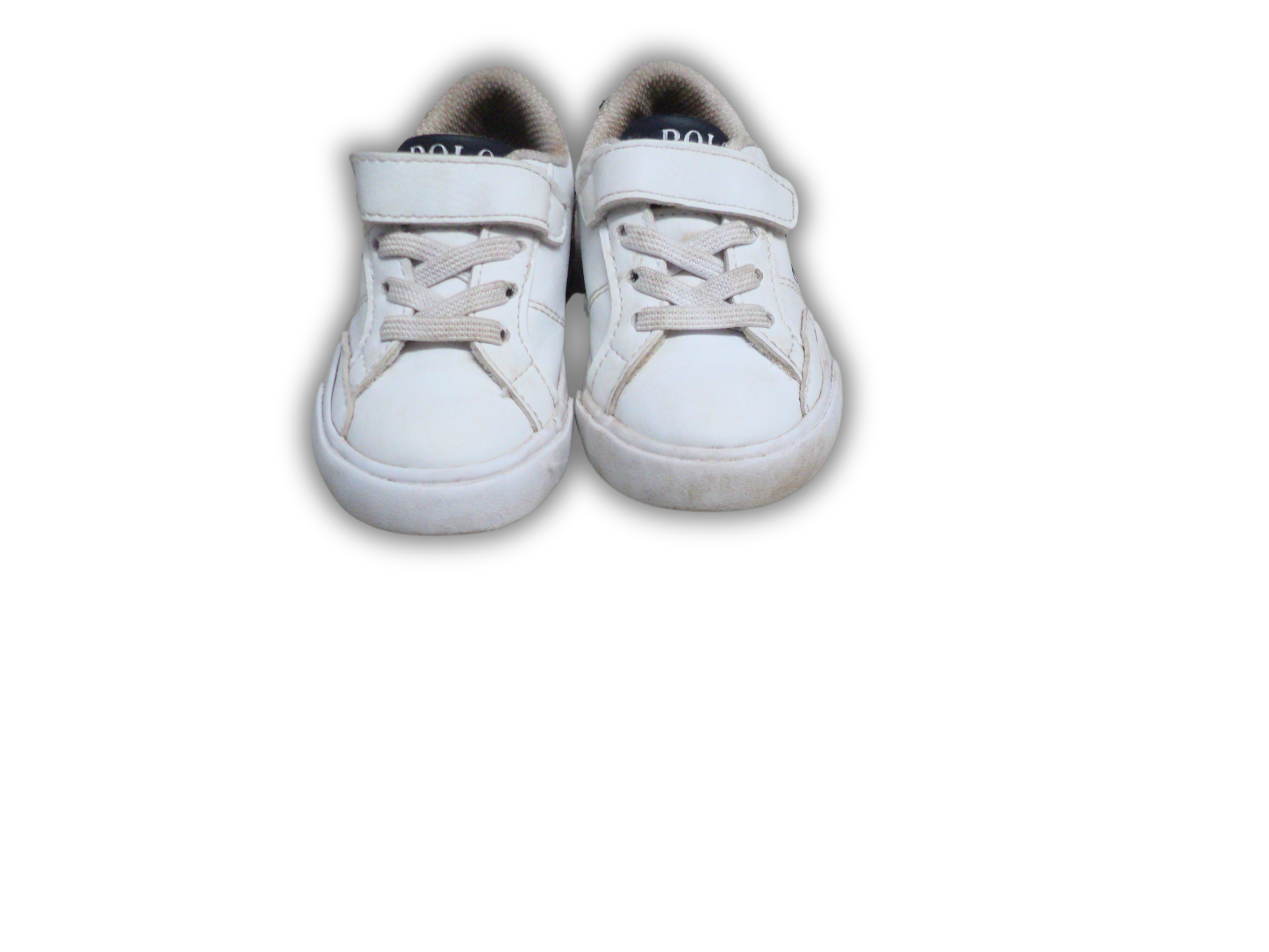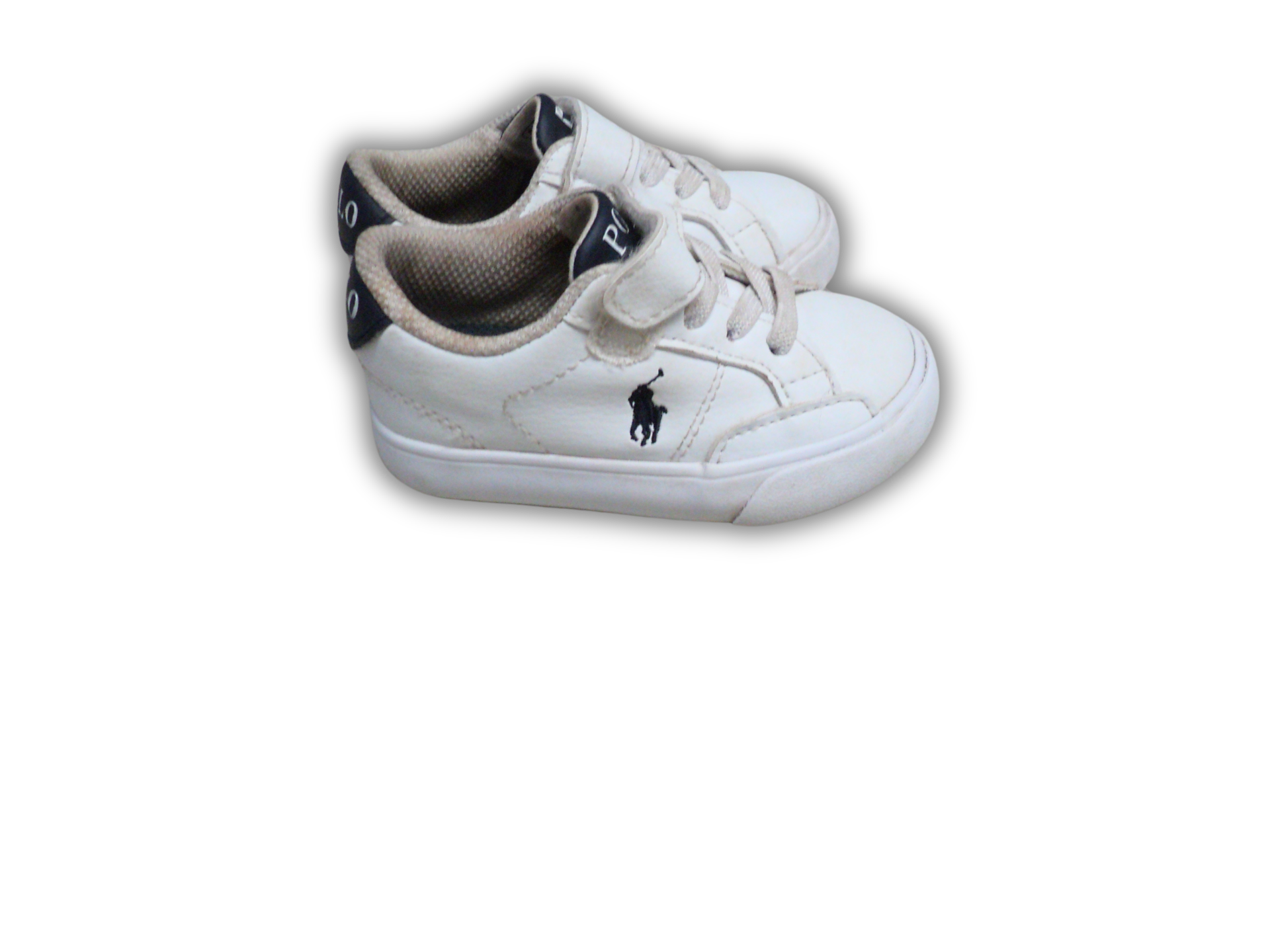 Wit met donkerblauwe schoentjes van Ralph Lauren met elastiek veters en klittenband