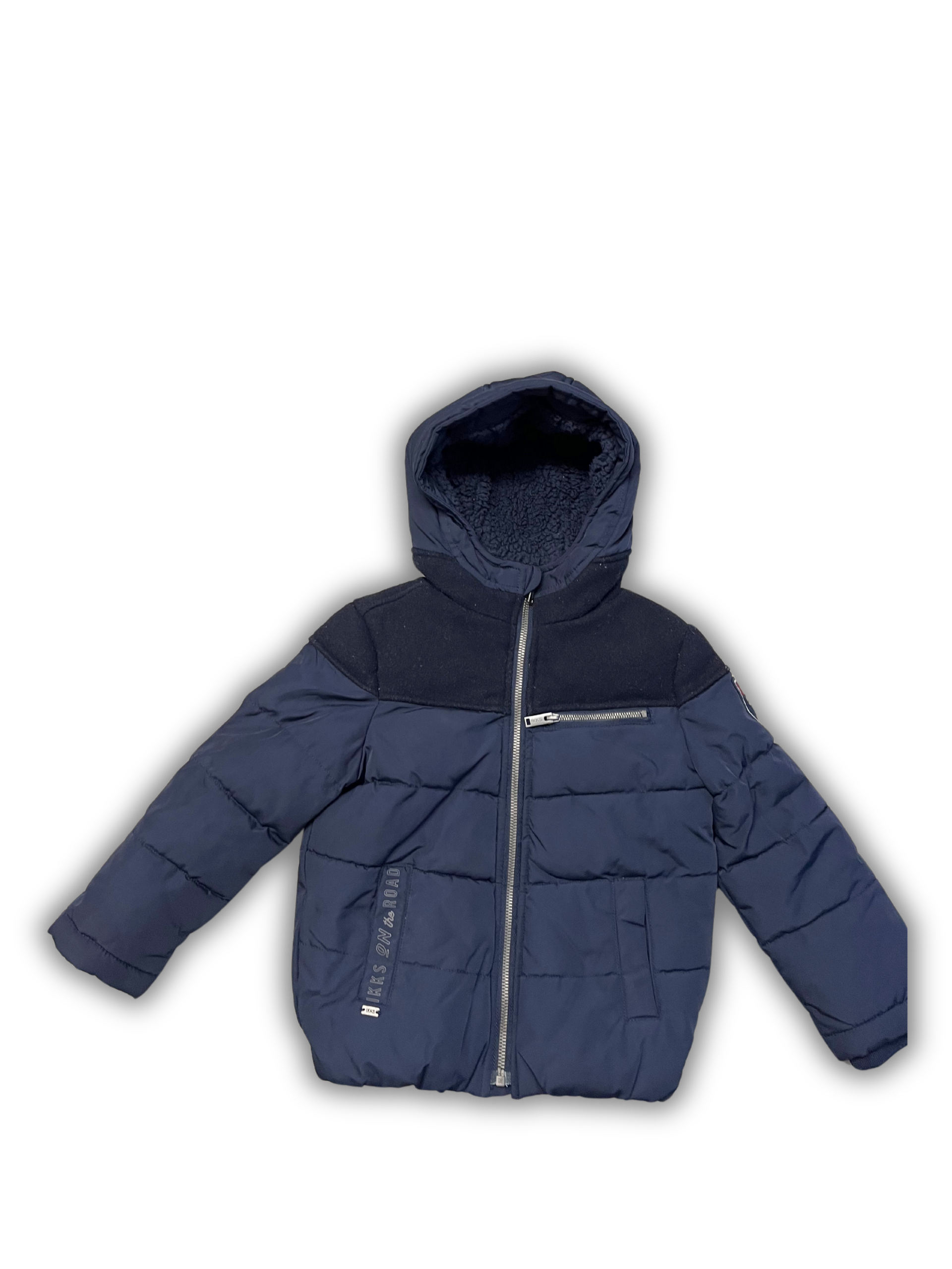 Donkerblauwe jas van IKKS met steekzakken en teddy voering