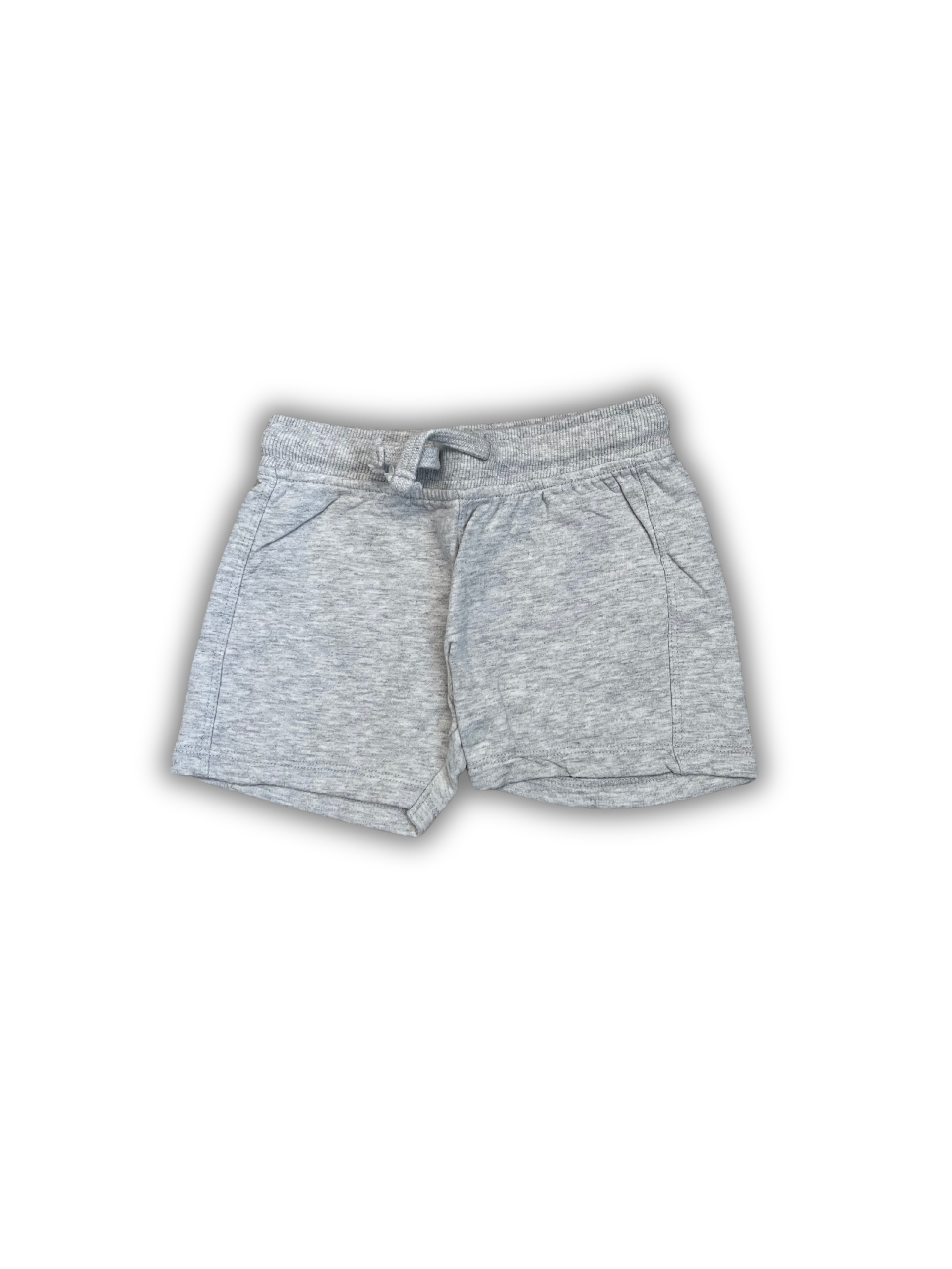 Licht grijs gemeleerde jogging short van Hema. De korte broek heeft een strikkoord in de tailleband voor een goed pasvorm
