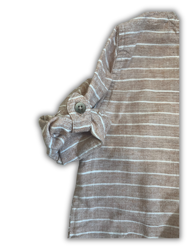 Longsleeve van Zara gemaakt van een fijne luchtige linnenmix. De longsleeve is lichtbruin met wit gestreept en heeft knoopjes. Aan de mouwen zitten ook knoopjes zodat deze makkelijk opgerold kunnen worden voor de warmere dagen.