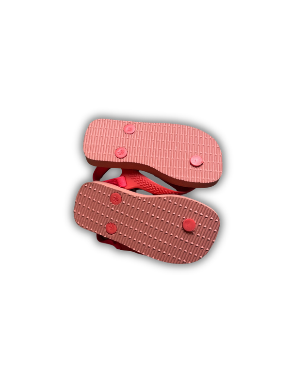 Roze sandaaltjes van Havaianas met elastieke bandje. Op het voetbed staat een vosje. De sandaaltjes zijn zo goed als nieuw