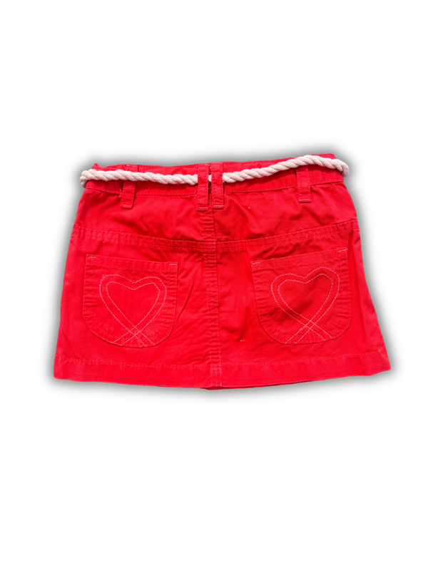 Rode rok van Hema met knoopjes en een bijpassend ceintuurtje