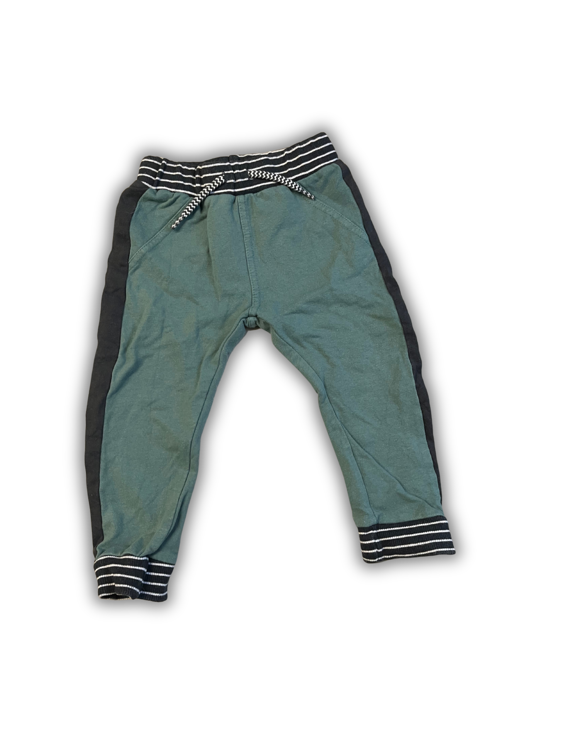 Heerlijk comfortabele set van Dirkje bestaande uit een longsleeve en joggingbroekje. De set is uitgevoerd in groen, antraciet en gestreepte vlakken. het broekje heeft een strikkoord in de tailleband