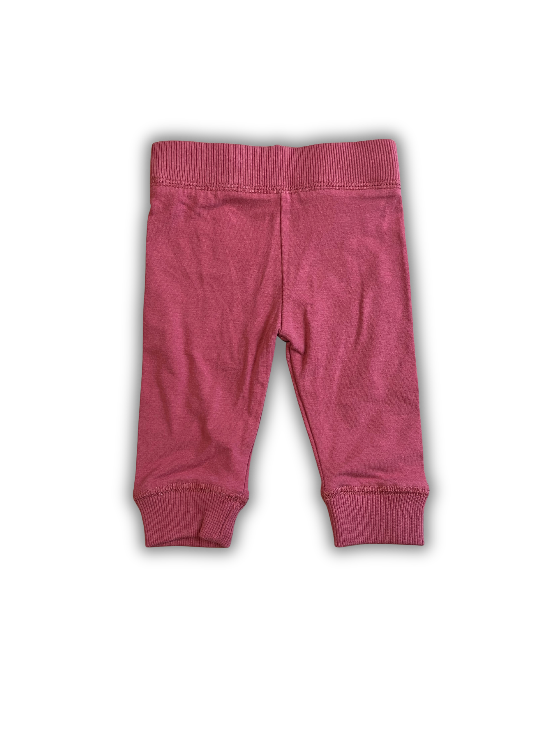 Set van 2 joggingbroekjes. 1 broekje heeft een mooie donkerroze kleur. Het ander broekje is lichtroze met een vrolijk kersjes motief