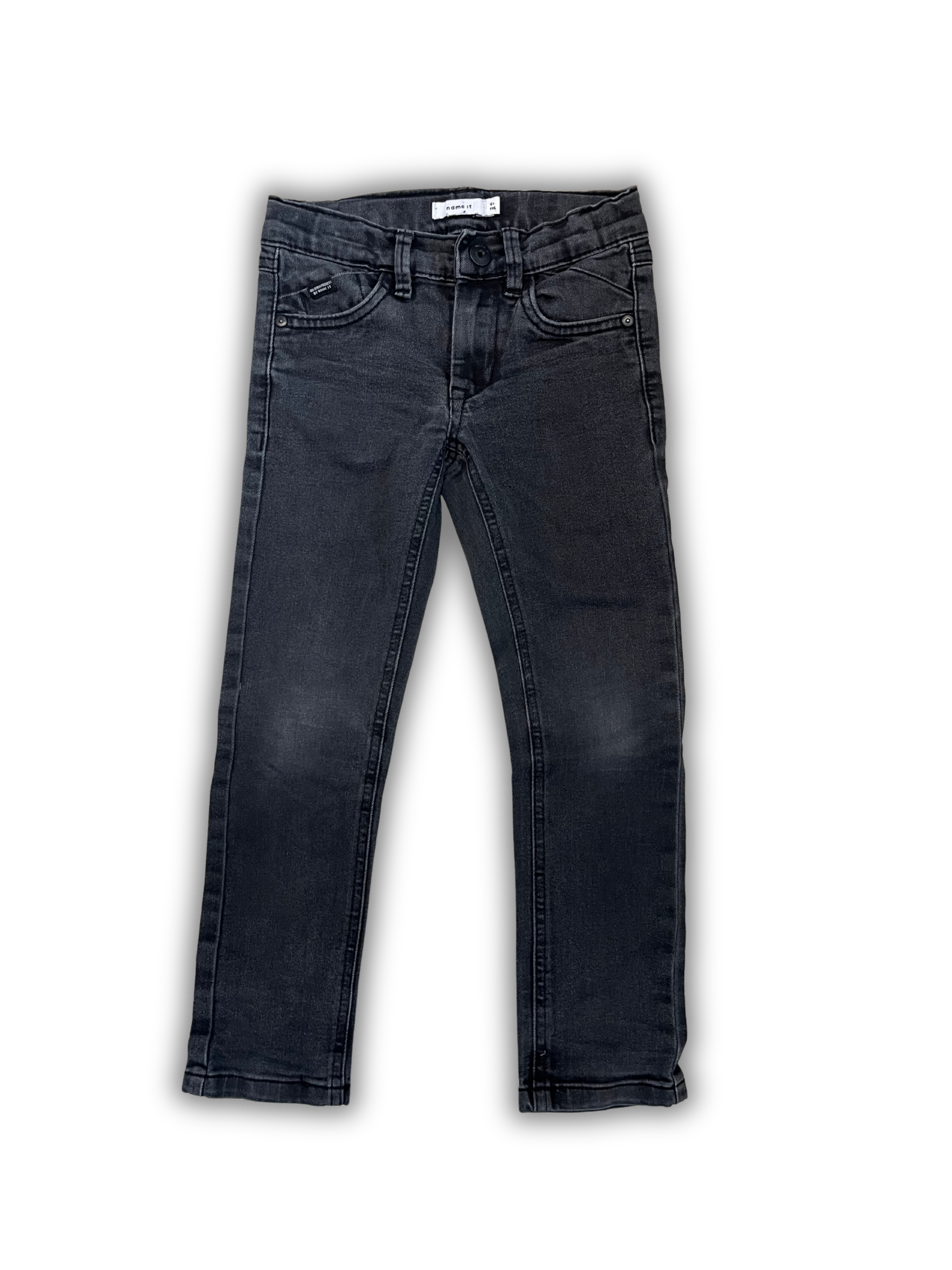 Donkergrijze jeans van Name It. De jeans heeft een extra slim fit, perfect voor de jongens met dunnere benen