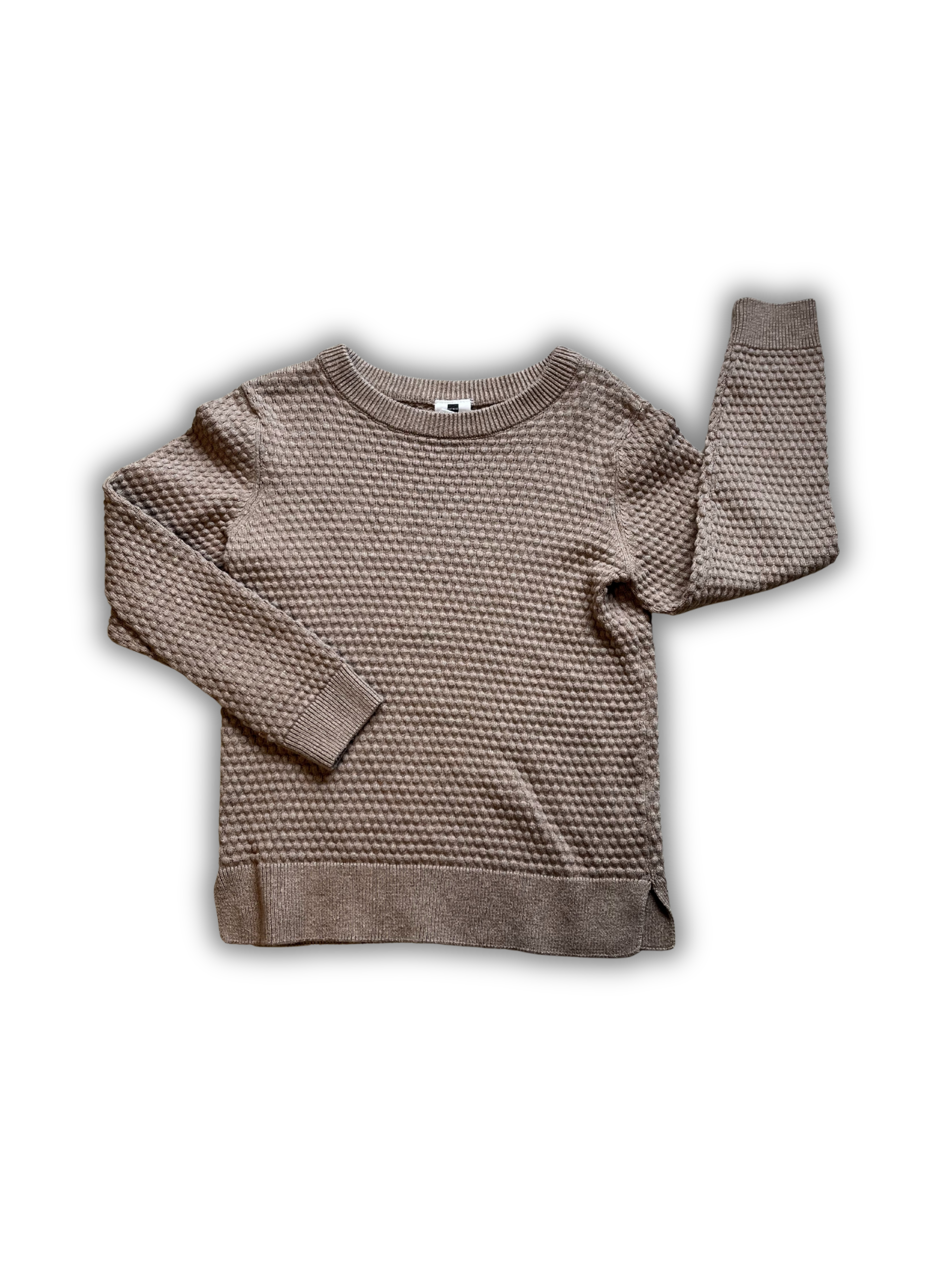 Zandkleurige gebreide sweater van Hema met leuke splitjes aan de zijkant